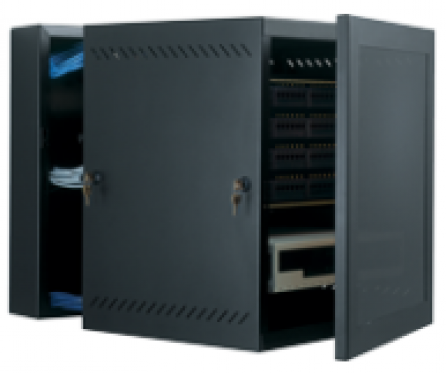 19" EIA 310-E Compliant. Horseshoe knockouts on the top and bottom of the enclosure allow already configured patch panels to be installed. 2 pair of #12-24 rails, fully adjustable; includes rack mtg. hardware. Solid Steel, Plexiglas, or Mesh Doors. 1, 2, and 3" conduit and horseshoe knockouts on top and bottom of rear section; 1, 2, and 3" on rear section. Full piano hinge provides added strength for rear section.