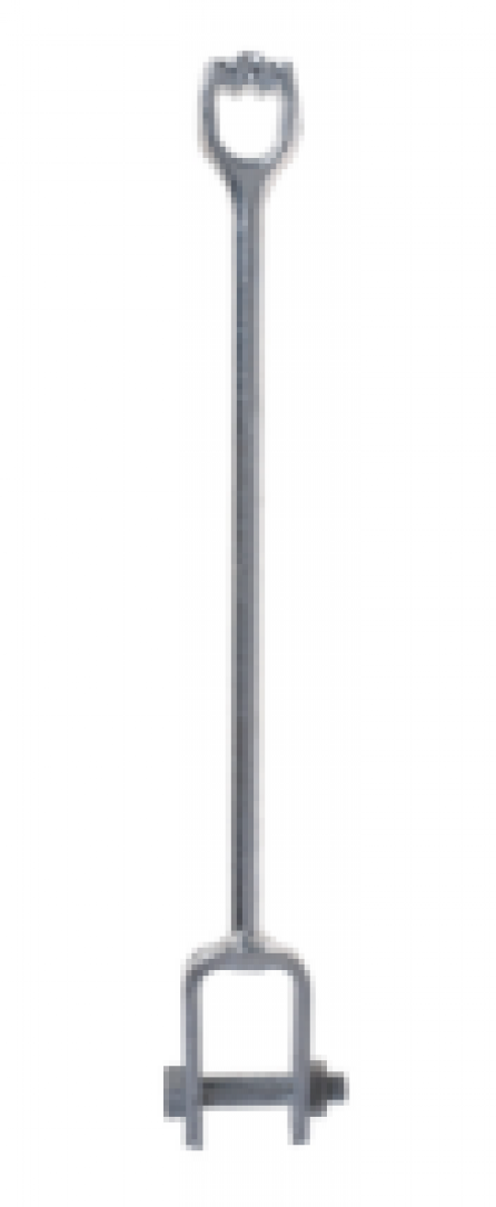 Expanding/Cross-Plate Anchor Rod Extension 1" (25.4 mm) Diameter Rod, 2' (609 mm) long with Tripleye and with 7/8" (22.2 mm) clevis bolt. These anchor rod extensions primarily are for making above grade connections between installed anchors and guy wires. Each rod includes high-strength bolt and nut. Hot dipped galvanized per ASTM A153.
