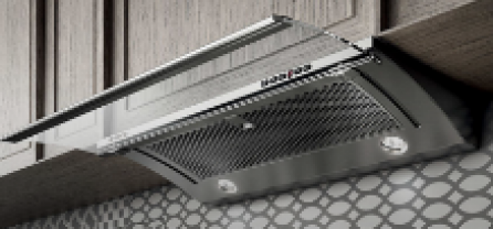 Sleek design, chrome-plated details, reliability, power. The curved glass surface of Glide allows to extract vapors easily and, when not in use, it can slide in to give more space to the kitchen or to use its controls. Glide also has a 400 CFM blower of 4 speeds, electronic buttons, LED ligthing and a dishwasher-safe, stainless steel mesh filters.