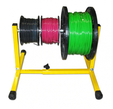 The Reel Stand holds a 1,000 foot reel of 10/2 or three reels of THHN wire that are five inches wide. The adjustable Reel Stand adapts to suit the job at hand. Whether you're pulling from a 1,000 foot reel or from a 6" spool of THHN, the Reel Stand will hold the reel for trouble-free pulling. For smaller reels, the removable axis spans the holding pegs to carry four inch reels of THHN or other specialty wires.