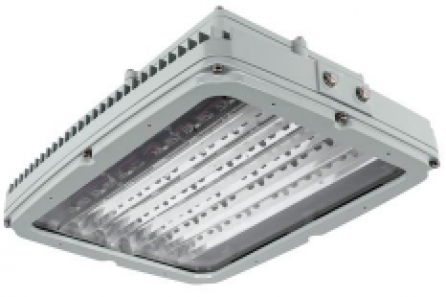 High-performance precision optics system. Field-replaceable LED circuit boards and drivers with quick disconnects. Approved for high-ambient applications, up to 65° C. Two permanent safety cable retention points. Terminal block. Dual hub entries, feed-through capable. Optional polycarbonate lens. 2 kV surge protection (10 kV option available). 5-year warranty.