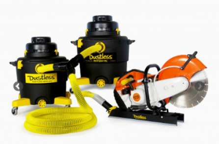 Vacuum shroud used in dust containment while using gas powered saws for flatwork. 2018 Pro Tool Innovation Awards Finalist , Dust Collection Shroud Category. Fits most gas powered cut off saws and captures up to 90% of concrete dust. Made of aluminum for rugged durability. Connects to a 2” soft hose cuff. Complies with OSHA Silica Rule when used with objective data. Polyethylene sliders to protect the work surface.