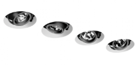 Modular Multiples® Apertures® Series, four AR111 lamps, preformed panel, transformer incorporated, round apertures.