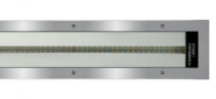 Recessed inground luminaire for interior and exterior use. Housing in extruded aluminium. Matte tempered glass cover with silk screened finish, 8 mm thick. Asymmetrical reflector made of pre-anodized mat aluminium (99,7%). End caps in die-cast aluminium. Transparent silicone gasket between housing and diffuser. Decorative stainless steel frame. Stainless steel locking screws.