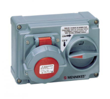 MENNEKES HMI Series switched and interlocked receptacles provide safety, durability and convenience all in one unit. These pre-wired units feature a 20A pin and sleeve receptacle and a patented interlock mechanism to prevent the switch from being turned "ON" unless the plug is fully inserted. The plug cannot be removed unless the switch is in the "OFF" position, supporting operator safety under load.