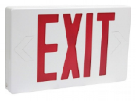 Dual-Voltage Input 120/277VAC Operation. UL Listed for Damp Location. Long-lasting, Energy Saving LED Lamps. 90 Minutes Minimum Emergency Operation. Injection Molded, 5VA Flame Retardant, High Impact, Thermoplastic. Universal Mounting Pattern. Canopy for ceiling or end mounting included. Easy Snap-out Chevrons Directional Indicators. Extra Faceplate included for field conversion to Double-Face.