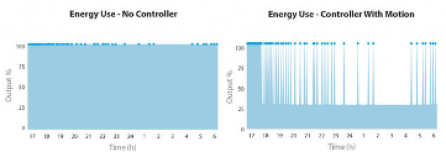 Presence based detectors are placed on every street light, utilizing their Data Acquisition Platform (DAP). Lighting is operated at lower output (e.g. 30% output), and when presence of a person or vehicle is detected, the lighting at the detecting light, as well as its neighbours within broadcast range of the radio, is raised to the target level of output (i.e. 100%). Lighting is always at approved light levels.