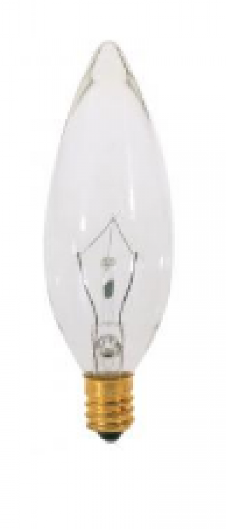 15W BA9 1/2 Incandescent; Clear; 2500 Average rated hours; 114 Lumens; Candelabra base; 130V.