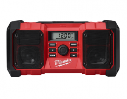 LOUD CLEAR SOUND. BUILT FOR WORK. Featuring a high-performance audio system and rugged design, the M18™ Jobsite Radio is built to amplify and survive the jobsite. Dual speakers and passive radiators combine to produce sharp highs, rich mids, and deep bass at all volumes. Durable metal speaker grills and shock absorbing end caps protect from drops and other harmful jobsite conditions while integrated handles allow for easy transport and storage.
