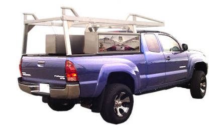 This lumber rack is also highlighted with custom made tool boxes. Highway Products customer needed extra room for tools and equipment without sacrificing bed space. Lockable storage, can't get enough. More than likely you're putting a truck together you want to be efficient, last a long time, and of course, look good too.