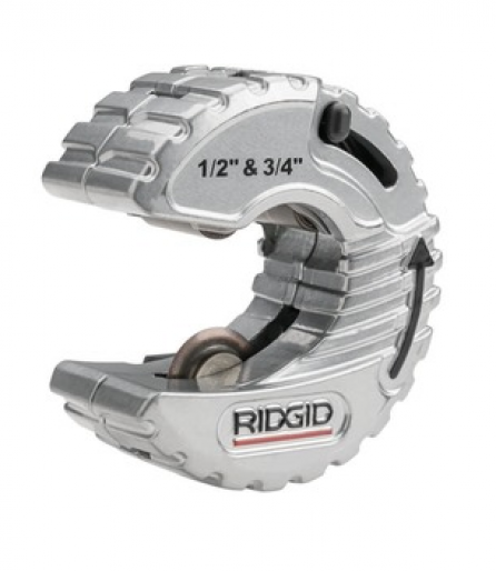 RIDGID® C-Style Close Quarters Copper Tubing Cutters cuts from 1/2" - 3/4" (12.7 - 19mm). Cut 1?2" and 3?4" (12.7 - 19mm) tubing with one cutter with quick change feature. Snap-on feature for a quick pipe connection and no size adjustment, saving valuable time. Spring loaded cutter wheel provides a constant pressure on pipe providing fast and straight cuts every time. RIDGID’s X-CEL® Wheel Pin for quick wheel replacement. No tools or disassembly of the housing required.
