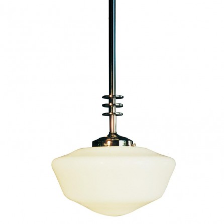 The Deco Shade updates the Schoolhouse glass shade by adding deco lines to a rod pendant.