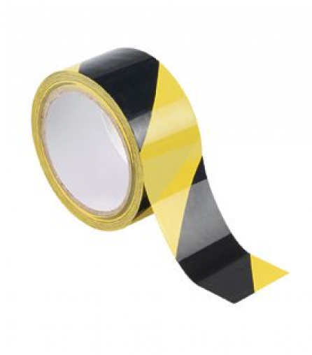 Floor tape, black and yellow striped polyester, 2.00" W x 100' L.