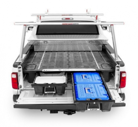 Bed slides were invented to make life easier. Decked revolutionizes pickup truck organization with a low profile truck bed tool box system. Decked revolutionizes pickup truck organization with a low profile truck bed tool box system that is compatible with Ford F-series, RAM trucks, Chevrolet Silverado, GMC Sierra, Toyota Tundra and Nissan Titan pickup trucks. DECKED is weatherproof, secure, ergonomic and made in the USA.
