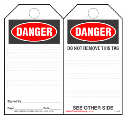Self-Laminated Safety Tags offer you the ultimate protection and customization in Safety Tags. Laminated Q-Tags® are paper tags thermal-laminated with heavy-duty polyester, Desktop Laminating Machine required. Laminated P-Tags® are durable plastic tags with polyester over-lamination, no laminating machine required: simply peel off the liner and press down for a permanent personalized tag.