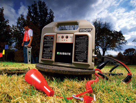 The 250R/T utility locating system is one of the most efficient, cost effective tools for locating buried telephone, CATV, power, gas, and water lines. Consisting of a receiver with passive or active capabilities and a transmitter for active locating, this simple, lightweight system is a great tool for any locate.